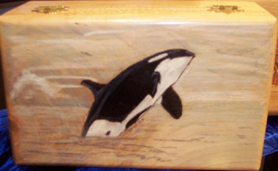 Simple but fun this is our killer whale saying hello. This design makes a great present for those who love whales.This design is woodburned by hand and oil pencil is used for color. We offer a free inscription on the inside lid of all our products.