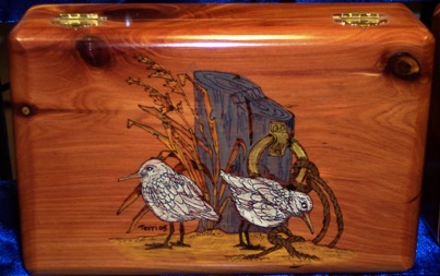 These birds are hunting for dinner on the beach by the ocean. This is a wonderful gift for any occasion for anyone who appreciates the beach life. The design is woodburned by hand and oil pencil is used for color. We offer a free inscription on the inside lid of all our products.