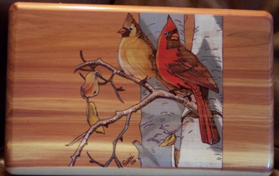 Think back on the beautiful first new spring day!!!!! These cardinals will always remind you of Spring and Summer lazy wonderful days. The cardinal design is woodburned by hand and oil pencil for colors. We offer a free woodburned inscription on the inside lid of all our products.