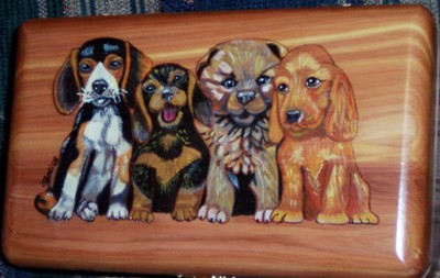Puppies, puppies, puppies everywhere. This design bring together 4 different breeds of the sweetest babies you have ever seen. This is a perfect gift for those dog lovers. Great addition to any home or office. The design is woodburned by hand and colors added with oil pencils. We offer a free woodburned inscription on the inside lid of all our products.