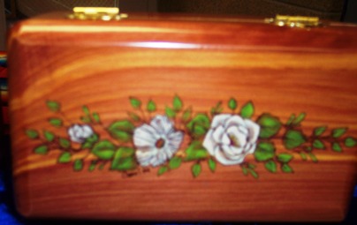 This unique design is available in all sizes of our Handcrafted Keepsake Boxes as well as all of our Handcrafted Cedar Chests. The design is hand woodburned and the color is applied by hand with oil pencil. Using oil pencil allows the grain of the wood to show through the design. Our Handcrafted Keepsake Boxes as well as our Handcrafted Cedar Chests make great Retirement Gifts, Birthday Gifts, Christmas Gifts, Anniversary Gifts, Graduation Gifts, or any occassion gifts. Put your FREE personal message on the inside cover of our Handcrafted Keepsake Boxes or Handcrafted Cedar Chests and you have a gift that will be cherished forever as a unique and personal one of a kind gift.
