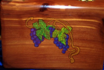These grapes are ready to pick. Great design for any occassion and fits with any deco at the home or office. The design is woodburned by hand and oil pencil is used for color. We offer a free inscription on the inside lid of all our products.