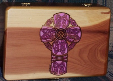 This celtic cross has alot of detail and depth. The colors bring it to life. This is a perfect gift for any reason or occasion. The design is woodburned by hand and oil pencil is used for color. We offer a free inscription on the inside lid of all our products.